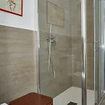 Gästrum tillhandahåller kylskåp, mathörna och vitrinskåpet. Hårtork, bidé och duschkabin finns här.